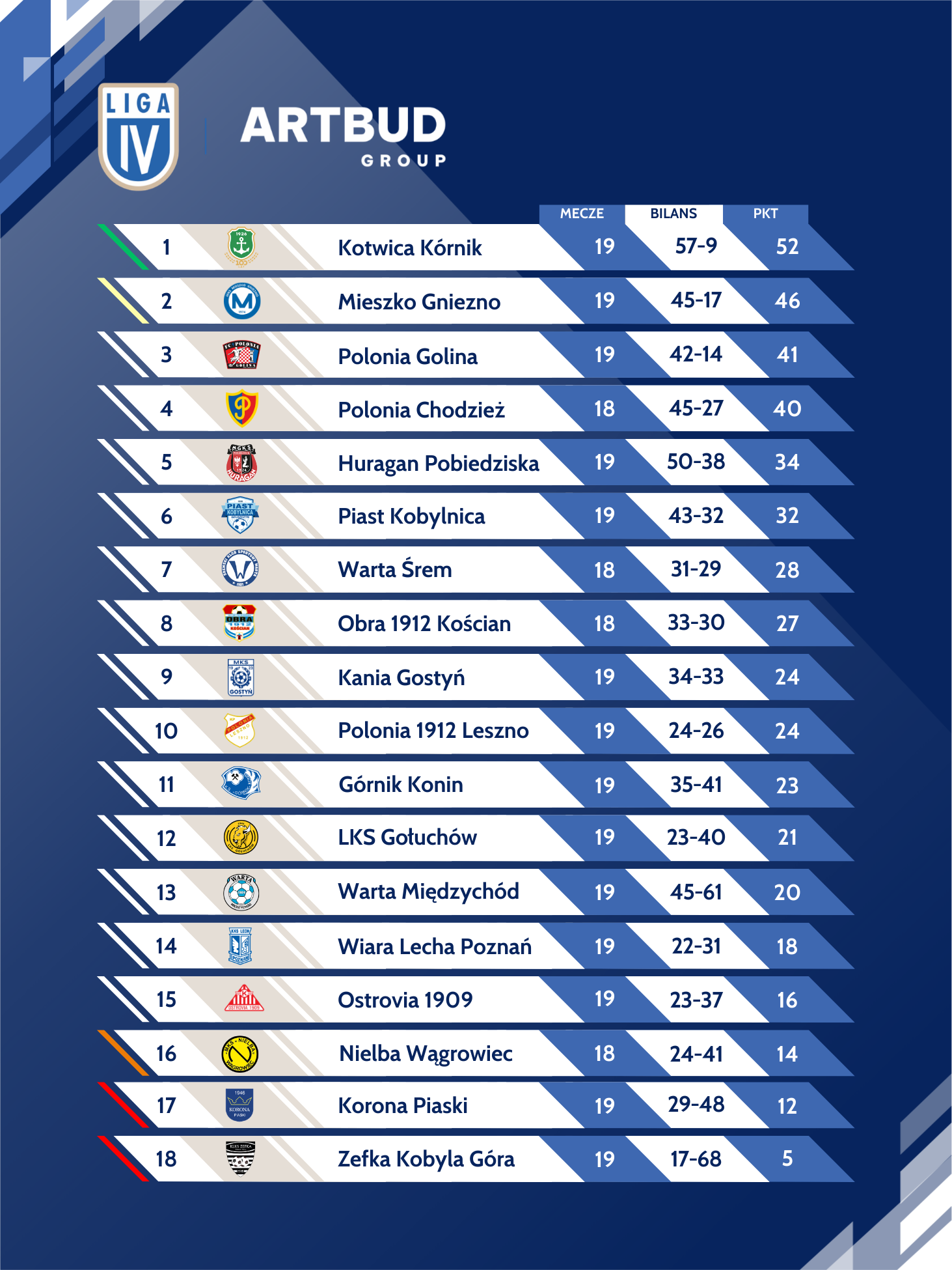 Podsumowanie 19. kolejki ARTBUD Group IV Ligi