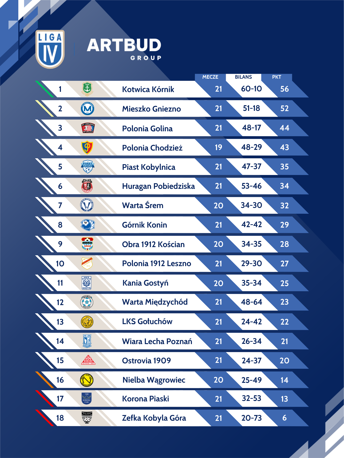 Podsumowanie 21. kolejki ARTBUD Group IV Ligi